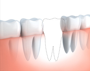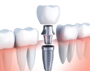 歯を失った箇所にインプラントを植立し、人工の歯を装着します。連結した人工歯を装着する場合もあります。