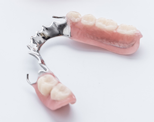 バネを残っている歯に引っ掛けて、人工の歯を固定します。