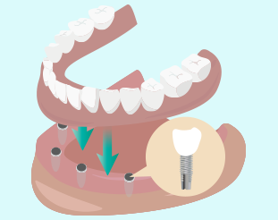 インプラントを埋入して連結した歯を装着します。埋入本数を抑えて、多くの歯を取り戻すことが可能です。