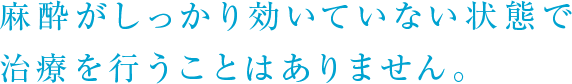 歯を支えている骨がかたいと、神経に麻酔薬が届きにくかったり、体質的に麻酔が効きにくい方がいたりします。麻酔が効きにくい場合には、麻酔薬の量を多くするなどの対応をとります。麻酔がしっかり効いていない状態で治療を行うことはありません。