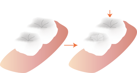 奥歯の溝は、歯ブラシが届きにくく磨き残しになりやすいです。そのため、特に虫歯になりやすい場所でもあります。シーラントは、この汚れがたまりやすい溝を埋めて、セルフケアを行いやすくし、効果的に虫歯を防ぐ方法です。白色のプラスチックで溝を埋めるため、シーラントが目立ってしまうようなこともありません。